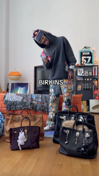 Last but certainly not least, the real star of the show: his Hermès Birkin collection. Kaye owns several Birkins, so we’re breaking them down one by one based on our best estimated identification.